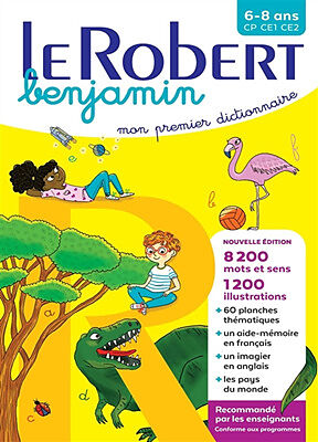 Le Robert benjamin Le dictionnaire qui accompagne l'apprentissage de la lecture et de l'écriture CP - CE1 - CE2 La maîtrise de la langue 8 200 mots et sens, dont de nouveaux mots sur le quotidien de l'école et le vocabulaire du merveilleux des exemples pour c...