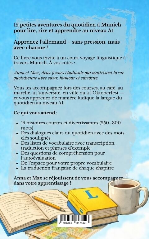 15 petites aventures du quotidien à Munich pour lire, rire et apprendre au niveau A1Apprenez l'allemand - sans pression, mais avec charme !Ce livre vous invite à un court voyage linguistique à travers Munich. À vos côtés :Anna et Max, deux jeunes étudiant...