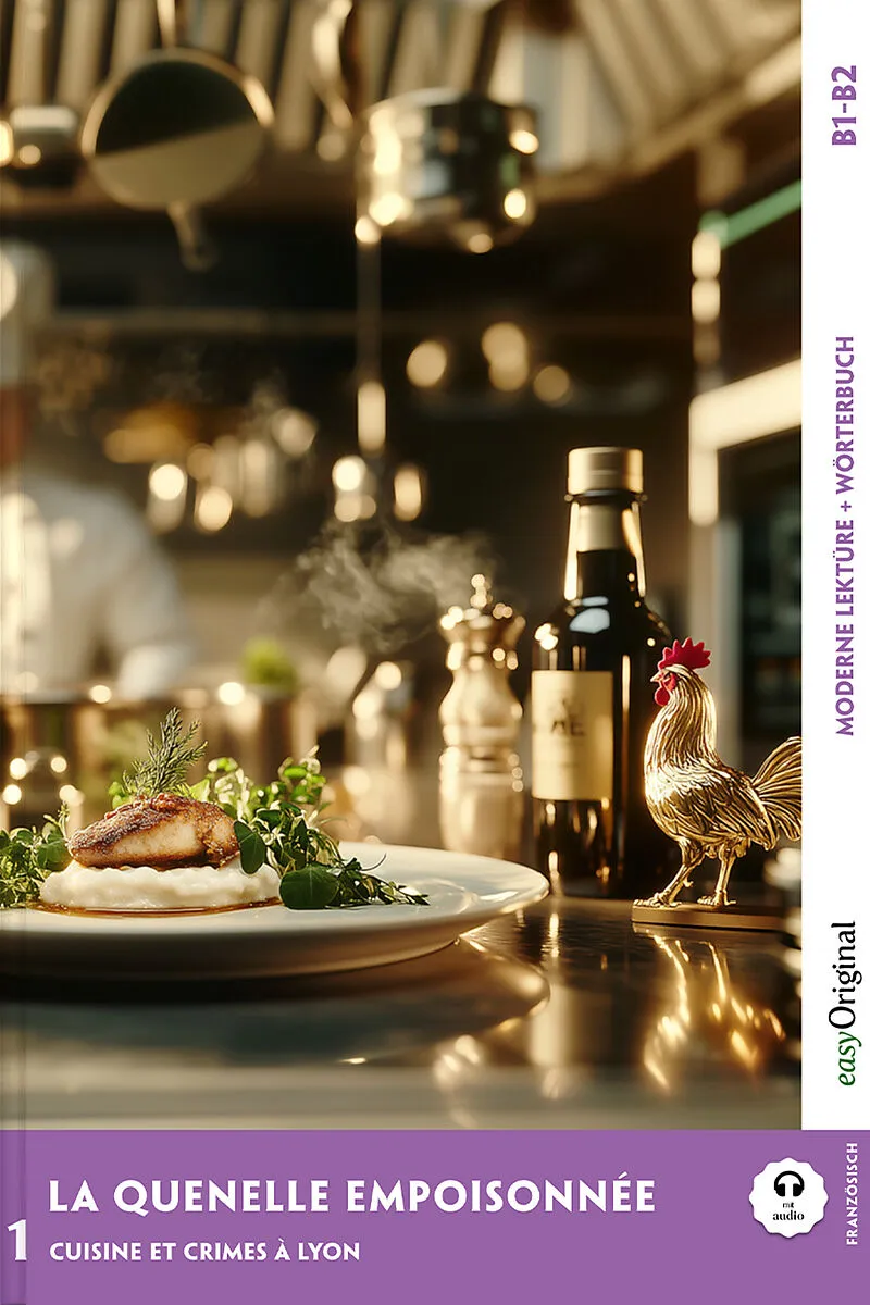 Leseprobe: https://easyoriginal.com/leseproben/DF34W.pdf La Quenelle empoisonnée - Die vergiftete Quenelle Ein Hauch von Gefahr liegt in der Luft des renommierten Lyoner Restaurants "Le Coq d'Or". Als ein mysteriöser Gast nach dem Genuss von Chefkoch Antoine Moreaus berühmter Hechtklößchen-Spezialität zusammenbricht, verwandelt sich das Gourmet-Paradies in den Schauplatz eines rätselhaften Verbrechens. Kann der leidenschaftliche Koch Antoine gemeinsam mit seinem loyalen Team - dem scharfsinnigen Maître d'hôtel Lucien und der kreativen Patissière Margot - seine Unschuld beweisen und den Ruf seines geliebten Restaurants retten? Tauchen Sie ein in die faszinierende Welt der Haute Cuisine, wo sich hinter jeder Zutat ein Geheimnis verbergen könnte. Folgen Sie dem Trio bei ihrer prickelnden Suche nach der Wahrheit, während sie versuchen, den gefährlichen Saboteur zu entlarven, bevor es zu spät ist. "La Quenelle empoisonnée" ist der fesselnde Auftakt einer neuen Krimi-Reihe, die Feinschmecker und Rätselfreunde gleichermaßen begeistern wird. Erleben Sie Spannung, Leidenschaft und einen Hauch französisches Flair in diesem köstlichen Mysterium, das Ihnen das Wasser im Munde zusammenlaufen lässt. Eine perfekte Mischung aus kulinarischem Genuss und packendem Krimi - "La Quenelle empoisonnée" ist der ideale Lesestoff für alle, die sich nach einer Prise Spannung in ihrem Alltag sehnen. Tauchen Sie ein in die erste packende Geschichte der "Cuisine et Crimes à Lyon" Serie und lassen Sie sich von der Brandung der Spannung mitreißen! Tauchen Sie ein in eine Serie fesselnder Krimis, die Ihr Herz schneller schlagen lassen und Ihr Französisch auf das nächste Level bringen. Diese Geschichten sind keine trockenen Lerntexte, sondern nervenaufreibende Pageturner, die Sie mitten in die Action katapultieren. Speziell für Französischlernende auf B1-B2-Niveau entwickelt, wartet hinter jedem Kapitel nicht nur ein spannendes Abenteuer, sondern auch ein umfassendes Wörterbuch. Fremde Begriffe? Kein Problem! Nach jedem Kapitel finden Sie die Übersetzungen, die Ihnen helfen, ohne den Lesefluss zu stören. So können Sie sich voll und ganz in die Handlung vertiefen und gleichzeitig Ihr Sprachgefühl verfeinern. Ideal für alle, die Krimis lieben und dabei ganz nebenbei ihr Französisch verbessern möchten.