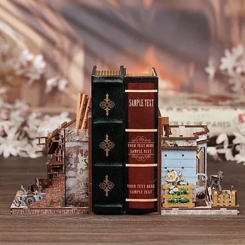 "Serre-livre en bois à assembler soi-même.Modèle doté d'un système d'éclairage LED (alimenté par deux piles LR6) pour le magnifié à la nuit tombée.Inclus dans le kit : notice en couleur fournie et très détaillée, planche en bois contenant les pièces prédécoupé...