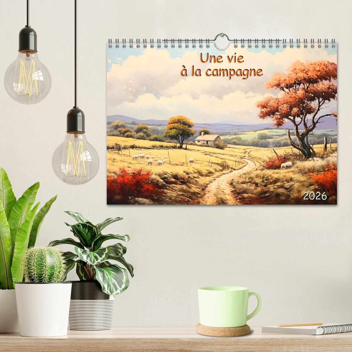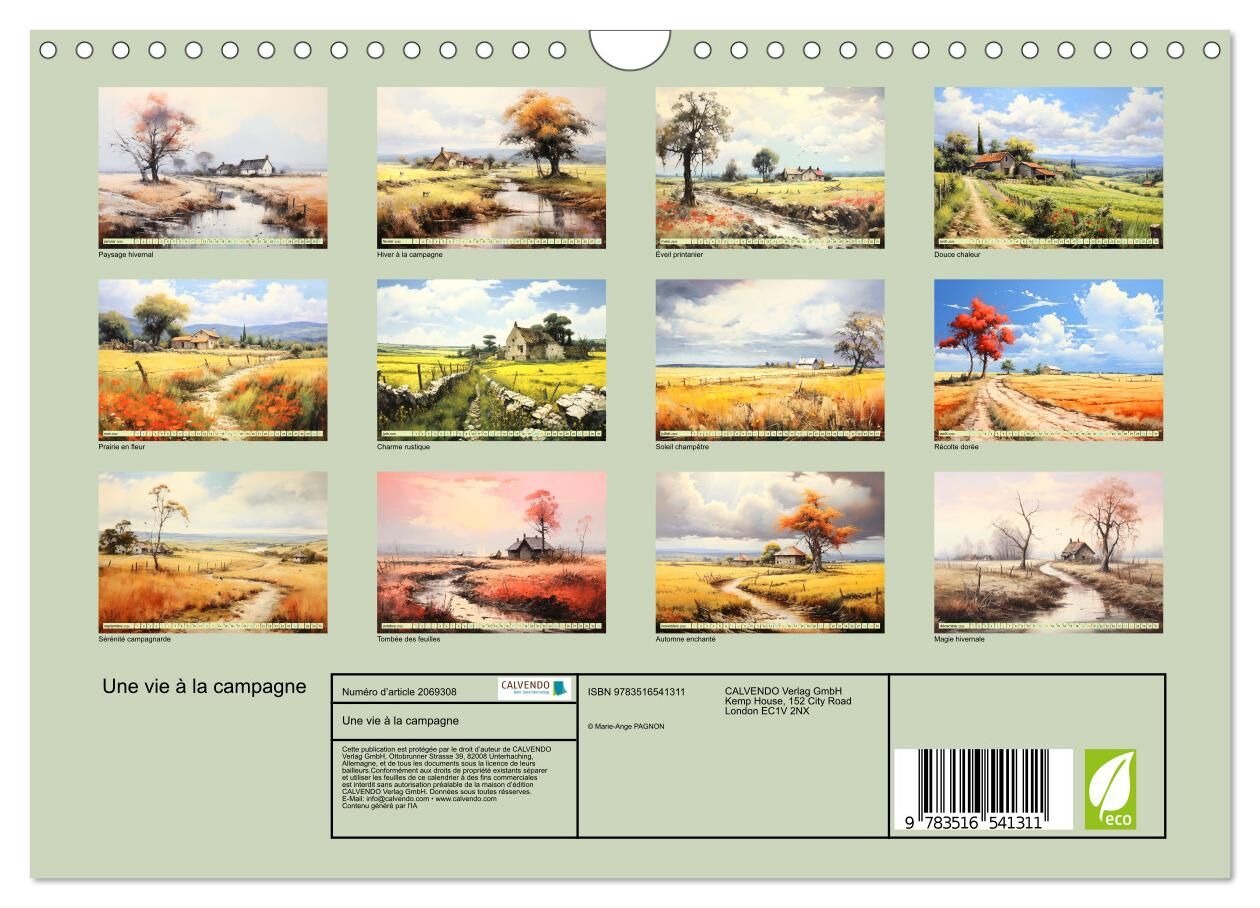 Chaque mois, plongez dans un monde de charme rural et d'évasion paisible avec ce calendrier illustré. Chaque page vous transporte dans une campagne pittoresque, où des maisons rustiques se blottissent près d'arbres majestueux, créant des scènes de be...