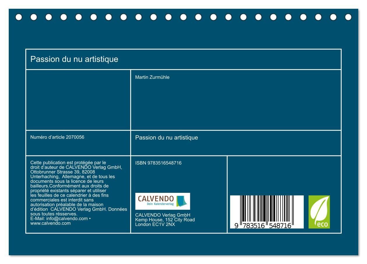Passion du nu artistique (Calendrier de bureau 2026 DIN A5 vertical), CALVENDO calendrier mensuel