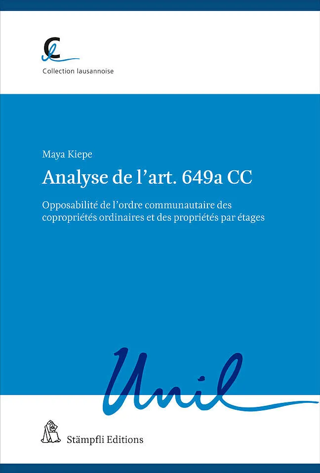 Prévue à l'art. 649a al. 1 CC, l'opposabilité de l'ordre communautaire des copropriétés ordinaires et des propriétés par étages pose de nombreuses questions juridiques : quels sont les éléments opposables ? À qui sont-ils opposables ? À quelles conditions ? Qu...