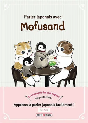 Des scènes avec les petits chats baroudeurs et leurs amis duveteux illustrent des expressions en japonais, contextualisées et accompagnées de différentes réponses adaptées, pour un apprentissage ludique de la langue.