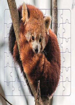 Un puzzle de 48 pièces représentant un panda roux, accompagné d'un poster en couleur servant de modèle.