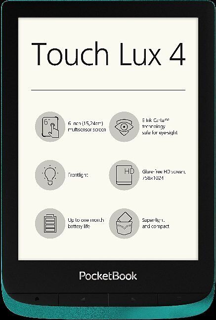 Der PocketBook Touch Lux 4 ist mit allem ausgestattet, was das Leserherz höherschlagen lässt. Superleicht und kompakt sowie stylish in Farbe und Design wurde er für begeisterte Leser geschaffen, die sich im Alltag keine Gelegenheit zum Lesen entgehen lassen wollen.
