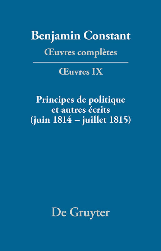 This critical edition presents the work of Benjamin Constant, author, religious historian and political thinker, in all its uniqueness and diversity. It includes the author's voluminous correspondence. The Collected Works comprise two series, the first c...
