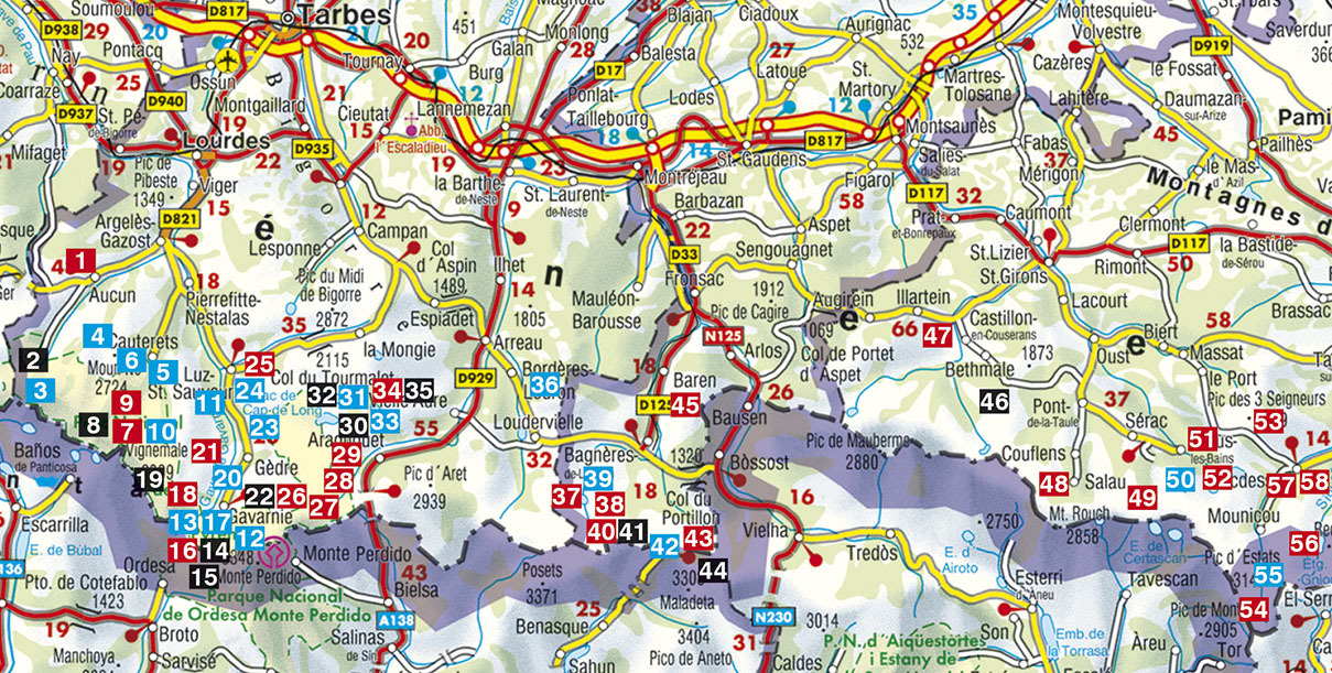 Les montagnes pyrénéennes exercent aujourd'hui encore une énorme fascination. Dans les parcs nationaux côtés espagnol et français qui s'étirent parallèlement le long de la crête principale centrale, les alpinistes et les randonneurs trouvent toujours...Les montagnes pyrénéennes exercent aujourd'hui encore une énorme fascination. Dans les parcs nationaux côtés espagnol et français qui s'étirent parallèlement le long de la crête principale centrale, les alpinistes et les randonneurs trouvent toujours de nombreux endroits qui semblent ne jamais avoir été foulés par l'homme. Le Cirque de Gavarnie au coeur du « Parc National des Pyrénées » est incontestablement la principale attraction des Pyrénées Centrales Françaises entre le Val d'Azun à l'ouest et la Vallée d'Ustou à l'est. Il a été déclaré conjointement avec les Cirques d'Estaubé et de Troumouse voisins patrimoine culturel et naturel mondial en 1967 par l'UNESCO. Chaque année, d'innombrables visiteurs se rendent dans le cirque pour admirer cet amphithéâtre grandiose avec ses masses calcaires aux formes imposantes et ses cascades qui tombent à pic. Même si les montagnes autour de Gavarnie sont magnifiques, les autres paysages de montagne et de vallée des Pyrénées Centrales Françaises n'ont certainement aucune raison de se cacher. Les pâturages d'un vert profond, les forêts féeriques, les torrents écumants, les prairies fleuries, les lacs de montagne idylliques, les imposants cirques et les fiers sommets comme le Balaïtous et le Vignemale forment un environnement naturel de rêve dans lequel chaque pas révèle d'impressionnantes sensations. Parmi les innombrables itinéraires existants, l'auteur Rogel Büdeler a sélectionné 58 des plus belles randonnées dans ses montagnes d'adoption - toutes dans de magnifiques paysages très variés. De nombreuses promenades courtes et faciles figurent dans ce guide tout comme des randonnées difficiles en haute montagne. Entre ces deux extrêmes, l'ouvrage propose un large éventail d'excursions pour tous les niveaux et les goûts - dont le GR10 emprunté par plusieurs des itinéraires ici décrits. Chaque proposition de randonnée comprend une petite carte, des profils d'altitude informatifs ainsi que des descriptions détaillées. L'auteur complète son guide - entièrement remanié pour cette troisième édition - en donnant une foule de renseignements indispensables pour passer un bon séjour dans les Pyrénées centrales.