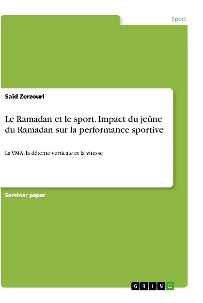 Seminar paper de l'année 2018 dans le domaine Santé - Sport - Divers, , langue: Français, résumé: L'objectif de la recherche est d'évaluer l'influence du jeûne du Ramadan sur la vitesse maximale aérobie en tant que paramètre important lors ...