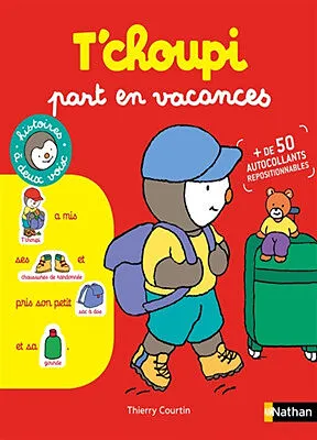 En vacances, T'choupi prend la voiture et le train, fait un pique-nique et se rend au camping. Une histoire à lire à deux voix et à compléter grâce à plus de cinquante autocollants repositionnables.