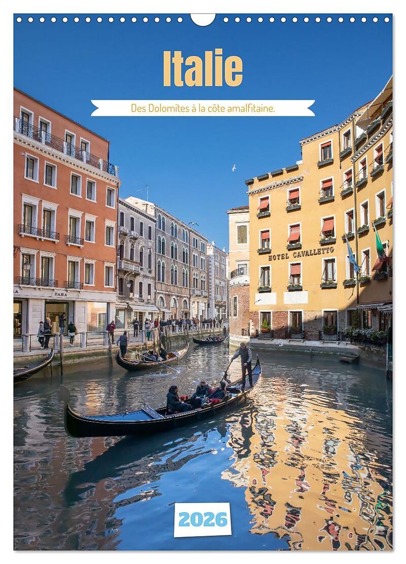 L'Italie en images - Un voyage éblouissant à travers les trésors du pays.Offrez à vos murs un voyage à travers l'Italie avec notre magnifique calendrier photo. De la majesté des Dolomites aux eaux azurées de la côte amalfitaine, de l'histoire in...L'Italie en images - Un voyage éblouissant à travers les trésors du pays.Offrez à vos murs un voyage à travers l'Italie avec notre magnifique calendrier photo. De la majesté des Dolomites aux eaux azurées de la côte amalfitaine, de l'histoire intemporelle de Rome à la magie de Venise, en passant par le romantisme de Vérone, les paysages enchanteurs de Naples et bien plus encore, chaque mois vous emmène au coeur de l'Italie.Laissez-vous envoûter par la beauté de ses paysages, son architecture incomparable et son atmosphère unique. Un véritable hommage à la dolce vita à découvrir toute l'année !Ce calendrier est une source d'inspiration et une invitation au voyage à travers chaque image.À offrir ou à s'offrir, pour tous les amoureux de l'Italie et des voyages.