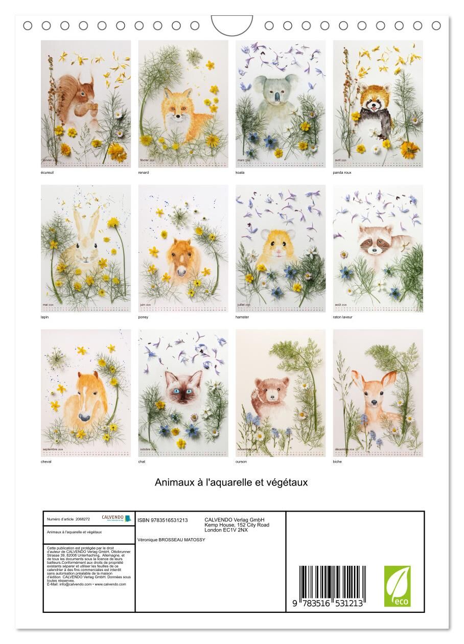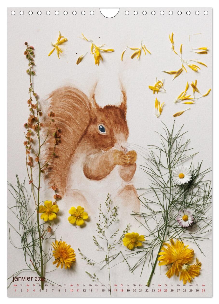 Animaux à l'aquarelle et végétaux (Calendrier mural 2026 DIN A4 horizontal), CALVENDO calendrier mensuel