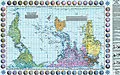 Diese flächentreue politische Weltkarte in Petersprojektion und Französischer Sprache ist pazifikzentriert und südorientiert.Die Karte zeigt den Pazifik in der Mitte und den Atlantik an den äußeren Rändern. Zudem wird sie südliche Hemisphäre oben dargestellt, ...