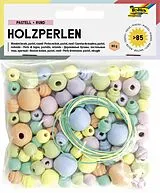 • Folia Holzperlen PASTELL RUND, 50g/>85 Teile & 2x Schnüre 85cm