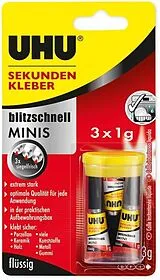 • UHU Sekundenkleber blitzschnell 45415 Minis, flüssig, Blister 3x1g