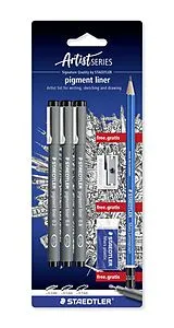 • STAEDTLER pigment liner 308 Fineliner, 3er Set (0.3, 0.5, 0.7), 1 Radierer + 1 Spitzer, 308 SBK3P