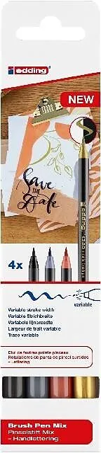• edding 1340 brush pen Mix, Pinselstift Handlettering Mix 4er Set