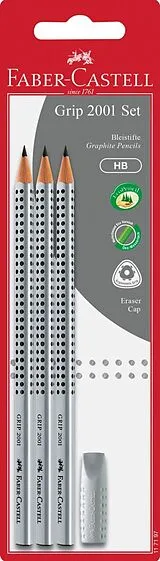 • Faber-Castell Bleistift GRIP 2001 HB 3er Set + Radierer