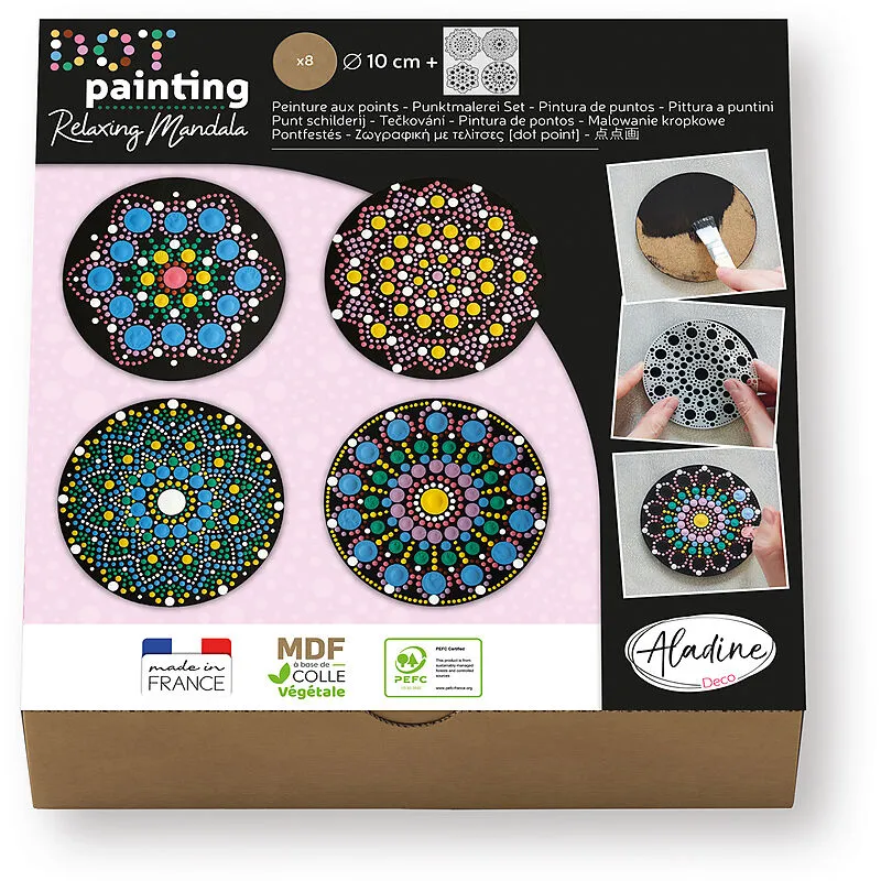 Dot Painting Diese entspannende Technik besteht darin, Farbpunkte aufzutragen, um harmonische und detaillierte Muster zu gestalten. Ideal, um die Kreativität zu fördern und gleichzeitig einen Moment der Ruhe zu genießen mit einem Produkt, das umweltfreundlich...