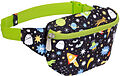 Bauchtasche Schwarze Gürteltasche mit Raketen, Planeten und Sternen in Kindergröße. Die Tasche verfügt über einen verstellbaren Tragegurt, sodass die Tasche auch als Crossbody Bag getragen werden kann. In die Vordertasche passen bequem Geldbörse und Handy. Au...