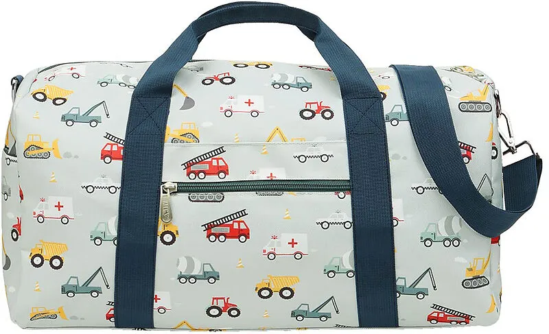 Reistetasche 46x25x22,5 cm Die geräumige, blaue Reisetasche mit Fahrzeuge ist ideal für den Urlaub, Übernachtungen oder als Sporttasche. Diese vielseitige Tasche verfügt über einen Doppelgriff und einen verstellbaren, abnehmbaren Schultergurt für optimalen Tr...