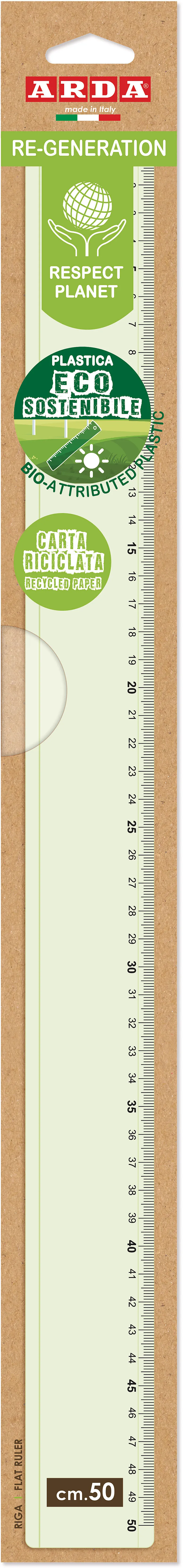 RE-GENERATION - Massstäbe Massstab 50cm Re-Generation, hellgrün, transparent mit heissgeprägter Skalierung. Material aus biologisch abbaubarem Kunststoff. 100% recycelbar. Verpackung aus Recycling-Papier. Geeignet für die Schule, das Büro und für die Verwendu...