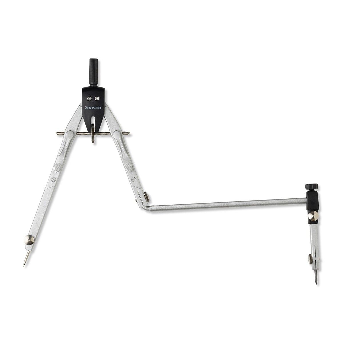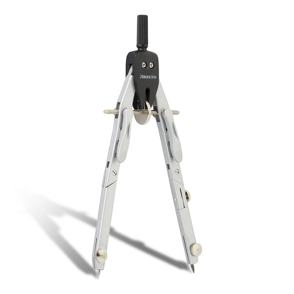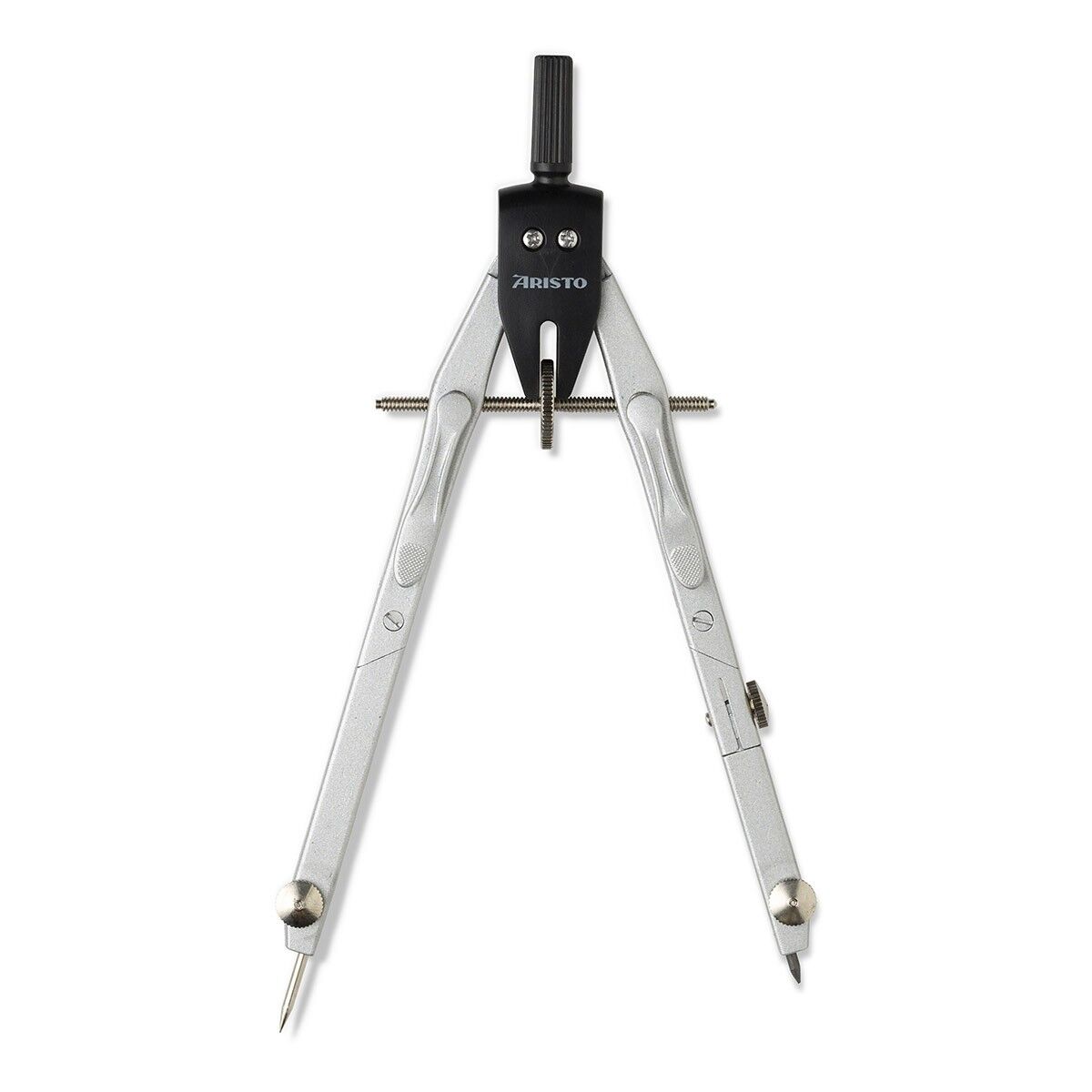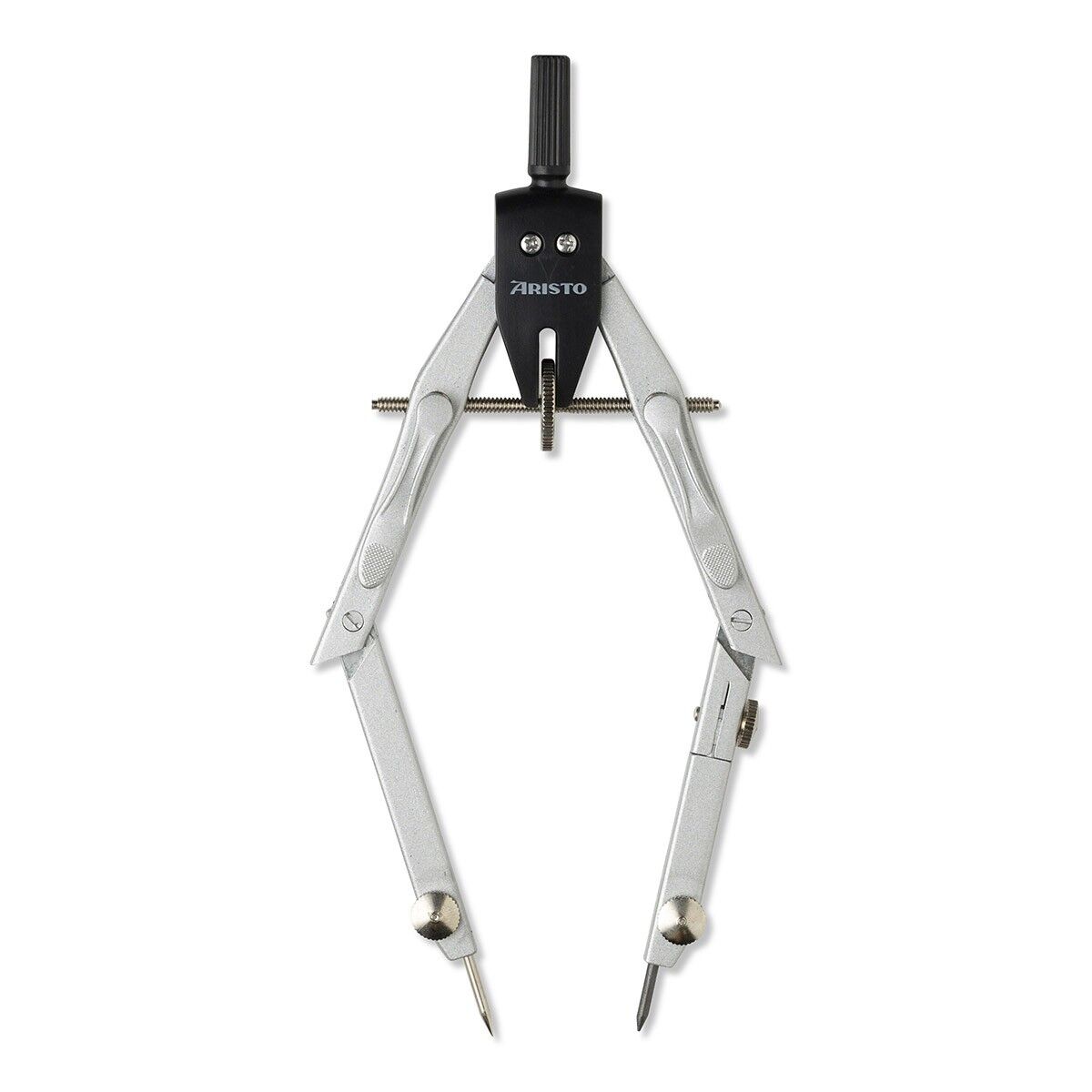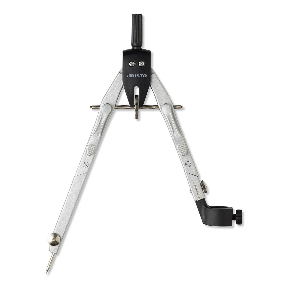 Schnellverstellzirkel Set, 9-teilig - Schenkel aus Zinkdruckguss silber - Kopf und Feststelldrücker aus Kunststoff schwarz - Spindel mit Mittelrad zur Feineinstellung - Zwei Gelenke - Aufnahme für Einsätze 4,0 mm - Max. Durchmesser des Zeichenkreises: 340 mm, ...