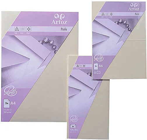 PERLE - Couverts Die Kuverts aus Perle-Papier sind ein beliebtes Bastelaccessoir, weil der Perlmuttglanz einen so wunderschönen und speziellen Schimmer gibt. Der Druck auf Perle erscheint hervorragend, da das Papier eine starke Farbgebung hat. Duch die weiche...