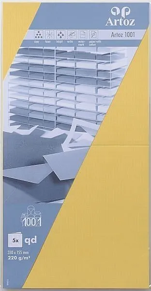 1001 - Karten - doppelt Dank der vielen Formate und Farben, haben Sie 1001 Möglichkeiten zum Schreiben, Gestalten und Bedrucken der ganz persönlichen Einladung. Artoz 1001 ist für jegliche Art von Drucker bestens geeignet und FSC zertifiziert. Blister mit 5 K...
