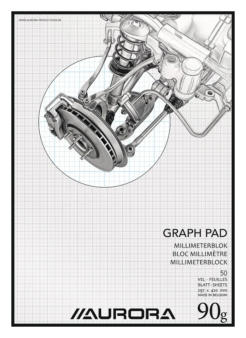Papierblock von Aurora, kariert, ideal für exaktes Zeichnen und Schreiben.