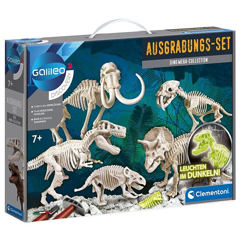 Mit diesem wissenschaftlichen Set kannst Du die Geheimnisse der Vergangenheit erforschen. Grabe wie ein richtiger Paläontologe im Erdblock und rekonstruiere fluoreszierende Skelette von Dinosauriern und prähistorischen Tieren.