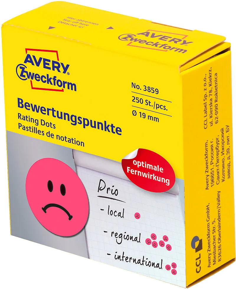 Bewertungspunkte im Spender Eine eindeutige Lösung: Sticker mit positiver oder negativer Bewertung. Kleben Sie die roten, traurigen Gesichter auf, wenn Sie gegen etwas stimmen wollen oder etwas Ihrer Bewertung nicht standgehalten hat. Einfach, praktisch und s...