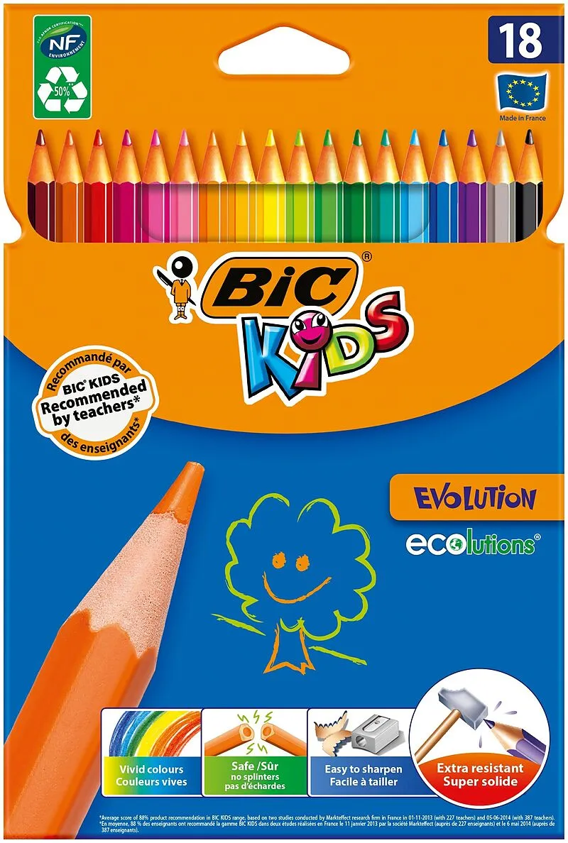 Robuste, holzfreie Sechskant-Buntstifte. Aus 50 % recyceltem Material. NF 400 Umweltfreundlichkeits-Zertifikat. Kaubeständig und sicher: kein Splittern bei gewaltsamem Bruch. Robuste und widerstandsfähige Mine, geschützt von einer lackierten Resin-Ummantelung....