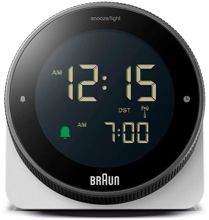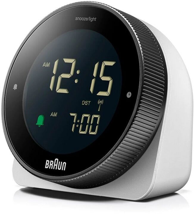 Braun Digitaler Funkwecker für die mitteleuropäische Zeitzone (DCF) mit Schlummerfunktion, umkehrbarem LCD-Display, drehbarer Lünette für schnelle Zeiteinstellung, Crescendo-Piep-Alarm in Schwarz, Modell BC24B-DCF. Funkgesteuert - Diese Braun Uhr wird automati...