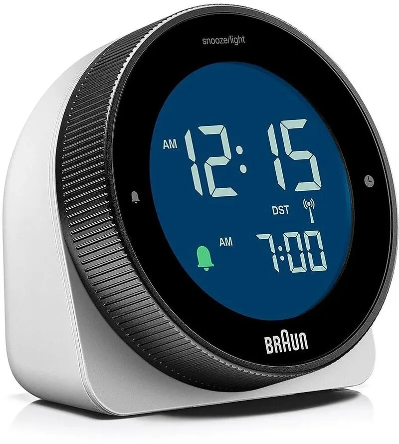 Braun Digitaler Funkwecker für die mitteleuropäische Zeitzone (DCF) mit Schlummerfunktion, umkehrbarem LCD-Display, drehbarer Lünette für schnelle Zeiteinstellung, Crescendo-Piep-Alarm in Schwarz, Modell BC24B-DCF. Funkgesteuert - Diese Braun Uhr wird automati...
