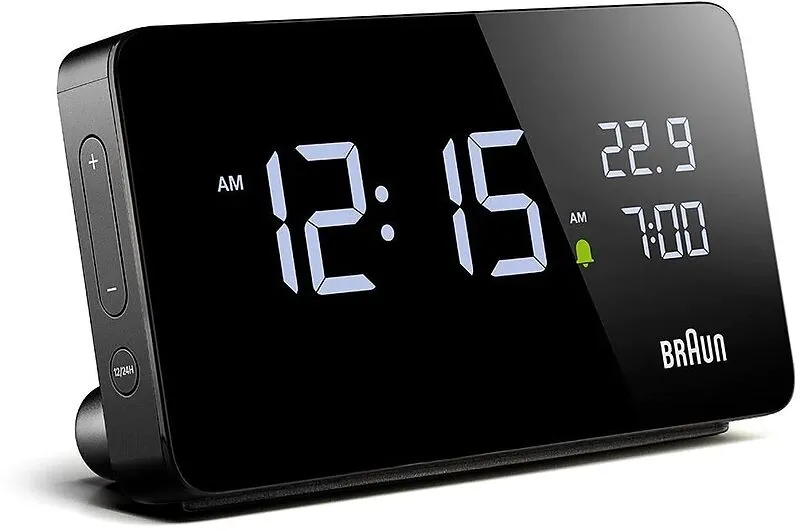 Braun Digitaler Wecker mit LCD-Display, 2x USB-C Anschluss zum Laden anderer Geräte, Zeit- und Datumsanzeige, Touch Snooze, Quick Set, in Schwarz, Modell BC20B. Optimale Ablesbarkeit - Das vertikal ausgerichtete VA-LCD-Display bietet vier einstellbare Helligke...