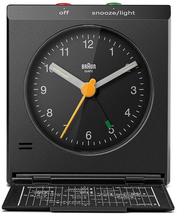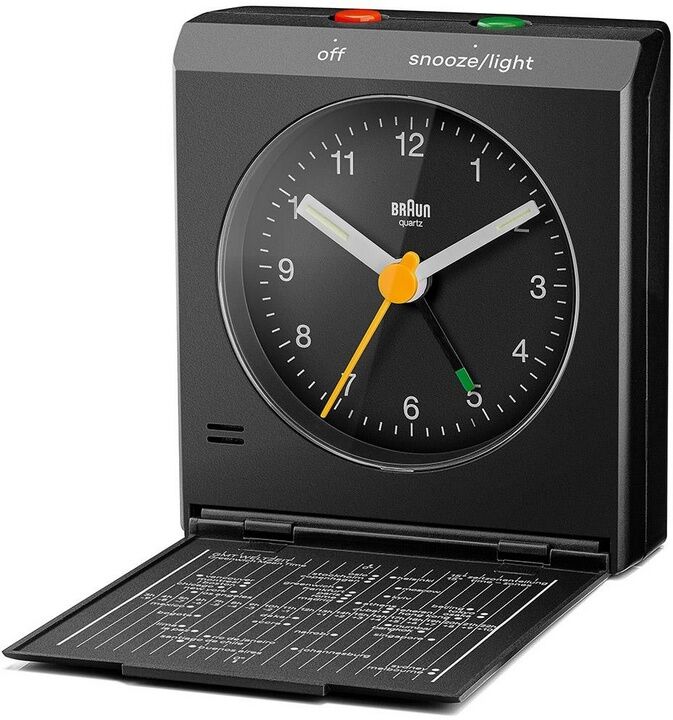 Braun Classic Reise-Analogwecker mit Schlummerfunktion und Licht, kompakte Grösse, Klappdeckel mit Weltzeitzonenkarte, leises Quarzwerk, Crescendo-Tonalarm in Schwarz, Modell BC05B. Crescendo-Piep-Alarm - Der Piep-Alarm wird immer häufiger und lauter, wenn Sie...