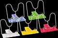 Transparenter Kunststoff, Sortierung: 5 Farben (weiß, gelb, rot, blau, grün); vernickelte Bügel Inhalt: 1 Leseständer - eine Farbwahl ist nicht möglich