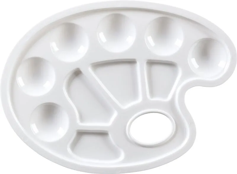 B/H: 235 mm x 170 mm; Kunststoff, Farbe: weiß; mit 10 Vertiefungen und Daumenloch; zum Mischen von Farben.