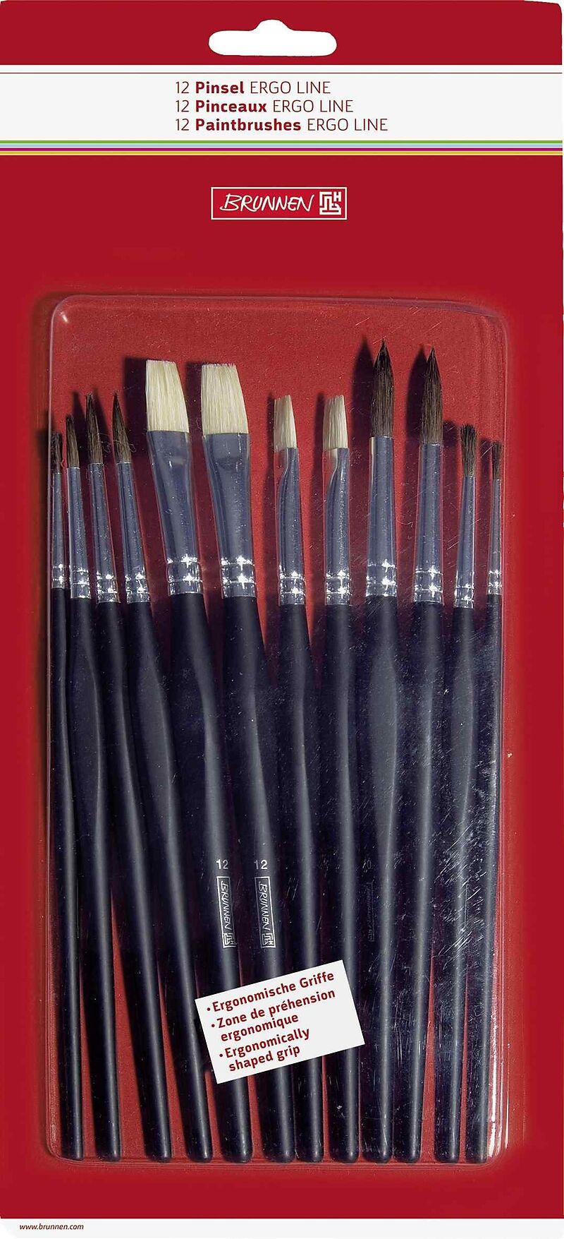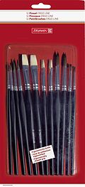 Holzstiele schwarz lackiert; Inhalt: je 2 Feinhaarpinsel (Größe 2, 4, 6, 10) und je 2 Borstenpinsel (Größe 8, 12); Anzahl der Pinsel: 12; nahtlose Aluzwinge; hochwertige und umweltverträglich ausgestattete Pinsel für die Schule und viele Hobbytechniken.