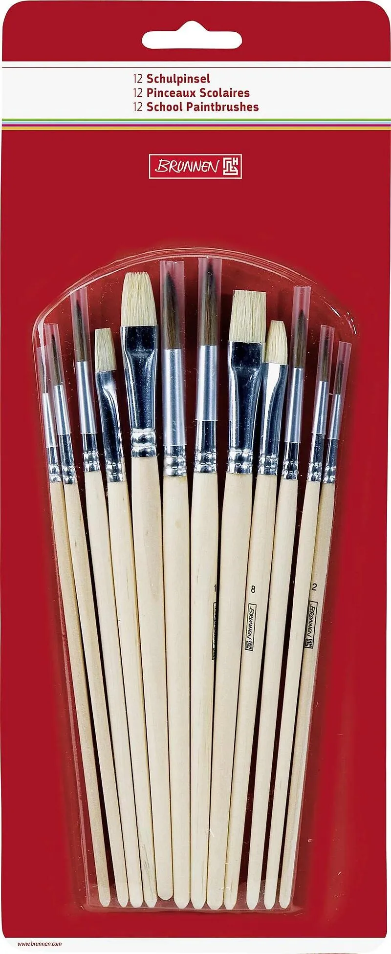 Stiele aus unlackiertem Naturholz; Inhalt: je 2 Feinhaarpinsel (Größe 2, 4, 6, 10) und je 2 Borstenpinsel (Größe 8, 12); Anzahl der Pinsel: 12; nahtlose Aluzwinge; hochwertige und umweltverträglich ausgestattete Pinsel für die Schule und viele Hobbytechniken ...