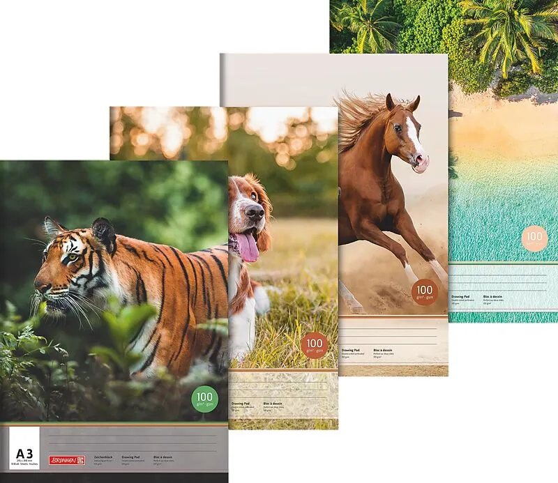 Format: A3; zweiseitig perforiert, gefälzelt.Inhalt: 1 Block mit 10 Blatt; 100 g/m; Sortierung: 4 unterschiedliche Motive (Tiere); eine Auswahl ist nicht möglich.