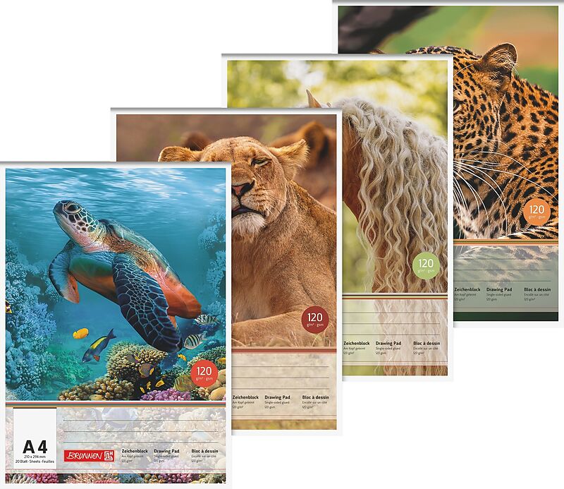 BRUNNEN Zeichenblock A4, 120g/m, 1 Block, 20 Blatt, Tiermotive