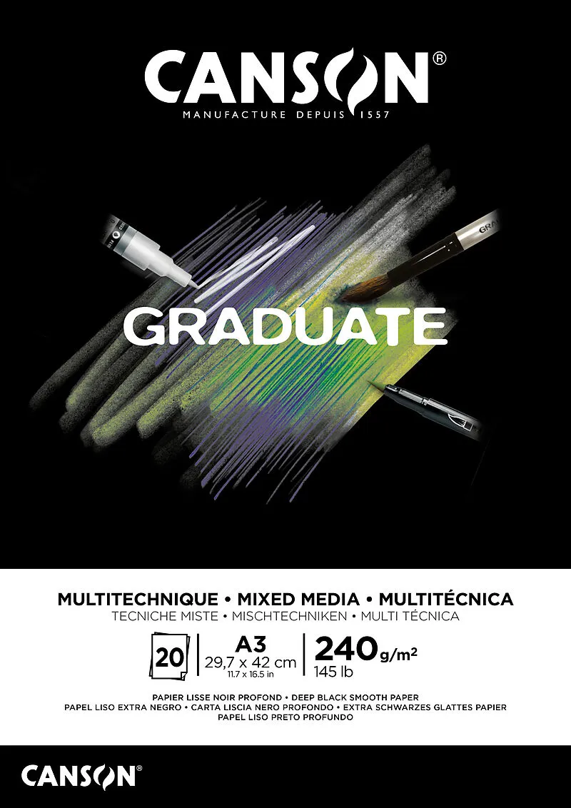 CANSON Graduate Mixed Media A3 31250P018 20 Blatt, schwarz, 240g
