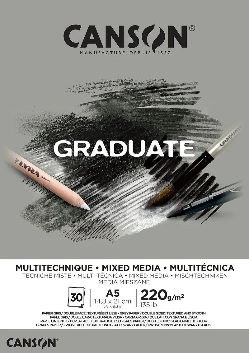 CANSON Graduate Mixed Media A5 400110370 20 Blatt, grau, 220g
