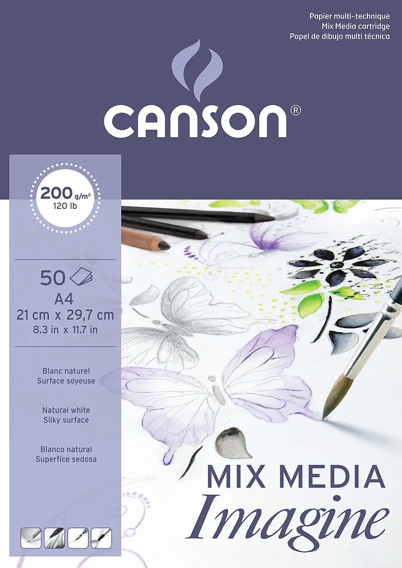 Imagine Zeichenblock Imagine ist ein Mixed Media Papier, das sich hervorragend anfühlt, wie eine Mischung aus Seide und Samt. Es zeichnet sich durch ein schönes natürliches Weiss aus. Das Papier ist ideal für die Verwendung mit Graphit, Filzstift und Markern ...