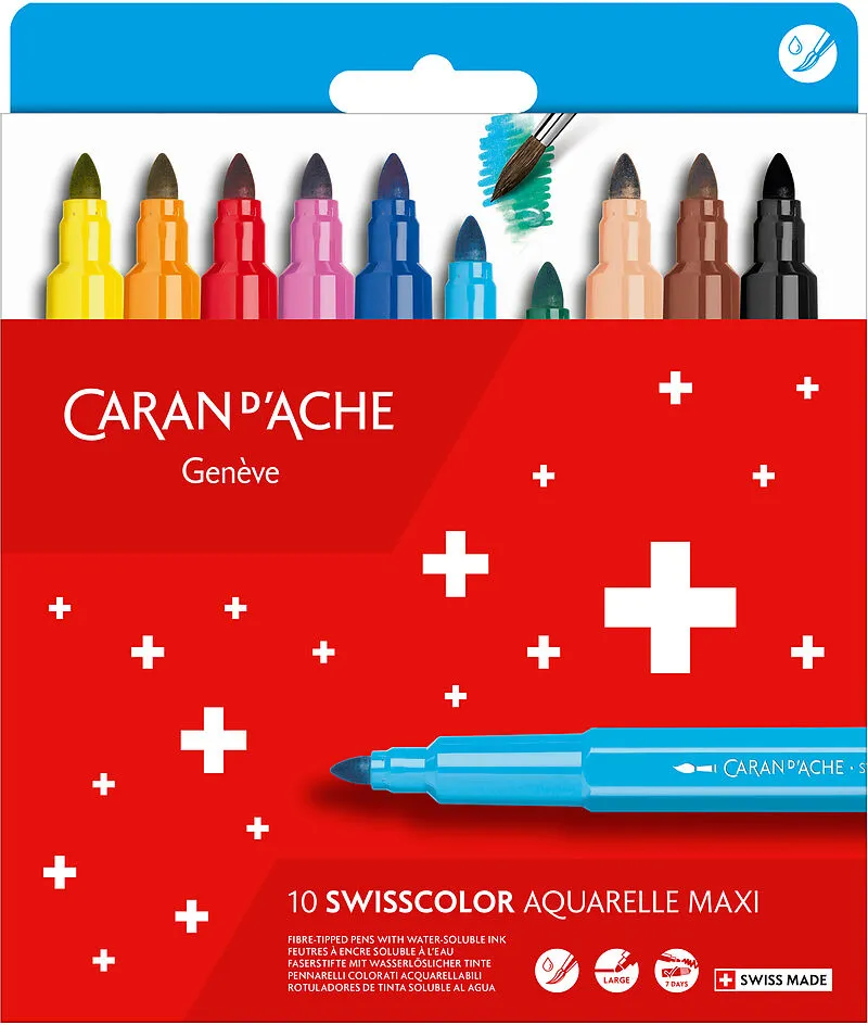SWISSCOLOR MAXI - Fasermaler Das 10-teilige Swisscolor Maxi Filzstiftset ist perfekt für junge Künstler und wurde speziell dafür entwickelt, dass die Kleinen es leichter haben, es in die Hand zu nehmen. Mit ihrer grösseren Grösse und der lebendigen Tinte ermö...