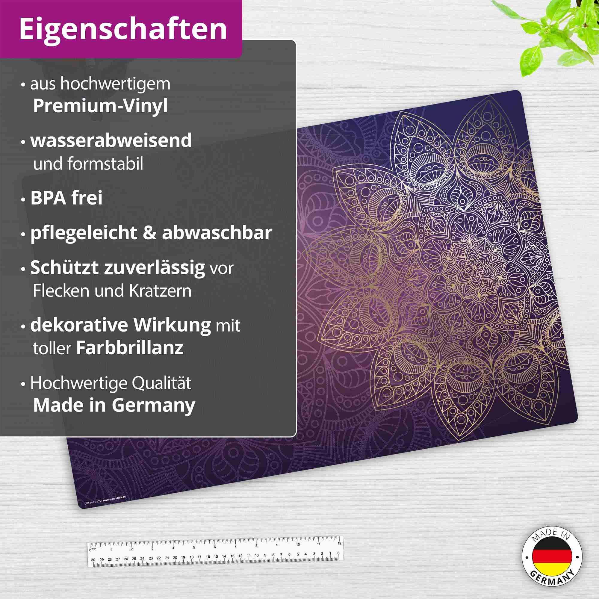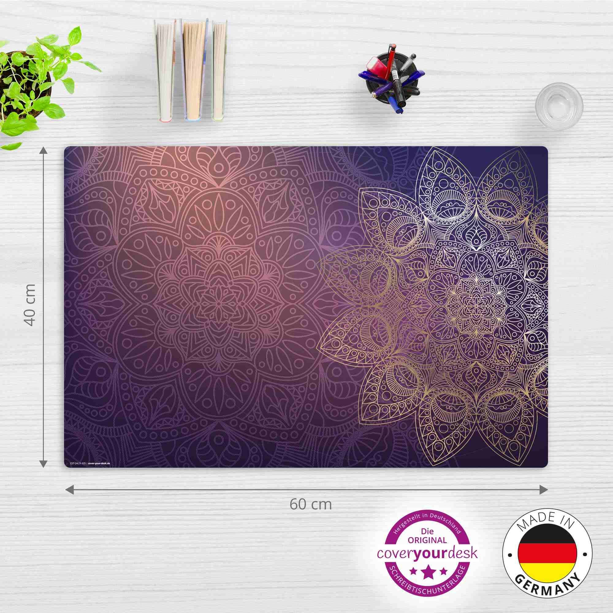 Cover-your-desk Schreibtischunterlage für Kinder und Erwachsene lila-goldenes Mandala, aus hochwertigem Vinyl, 60 x 40 cm