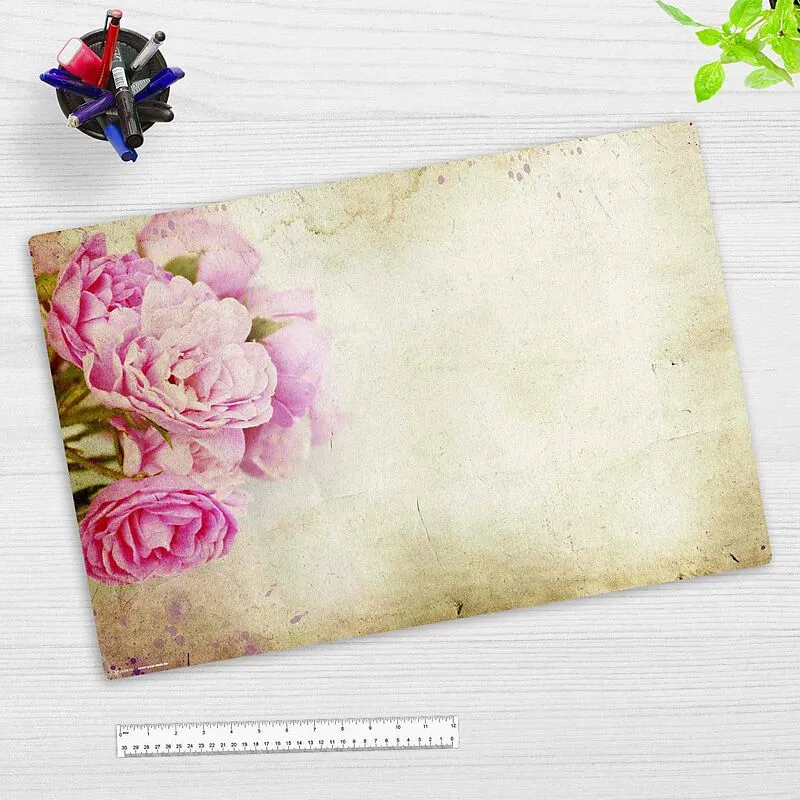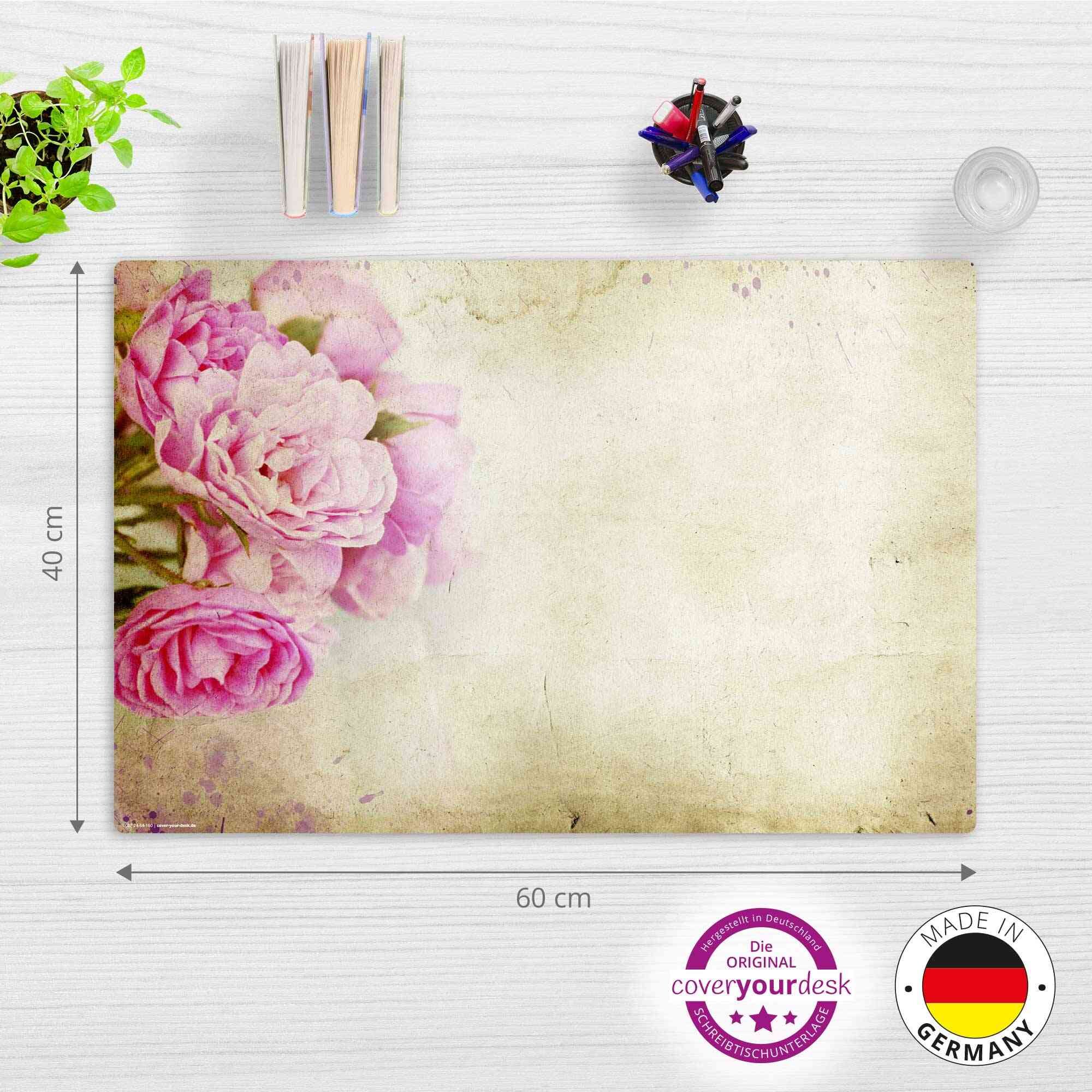 Cover-your-desk Schreibtischunterlage für Kinder und Erwachsene Rosa Pfingstrosen Vintage , aus hochwertigem Vinyl, 60 x 40 cm