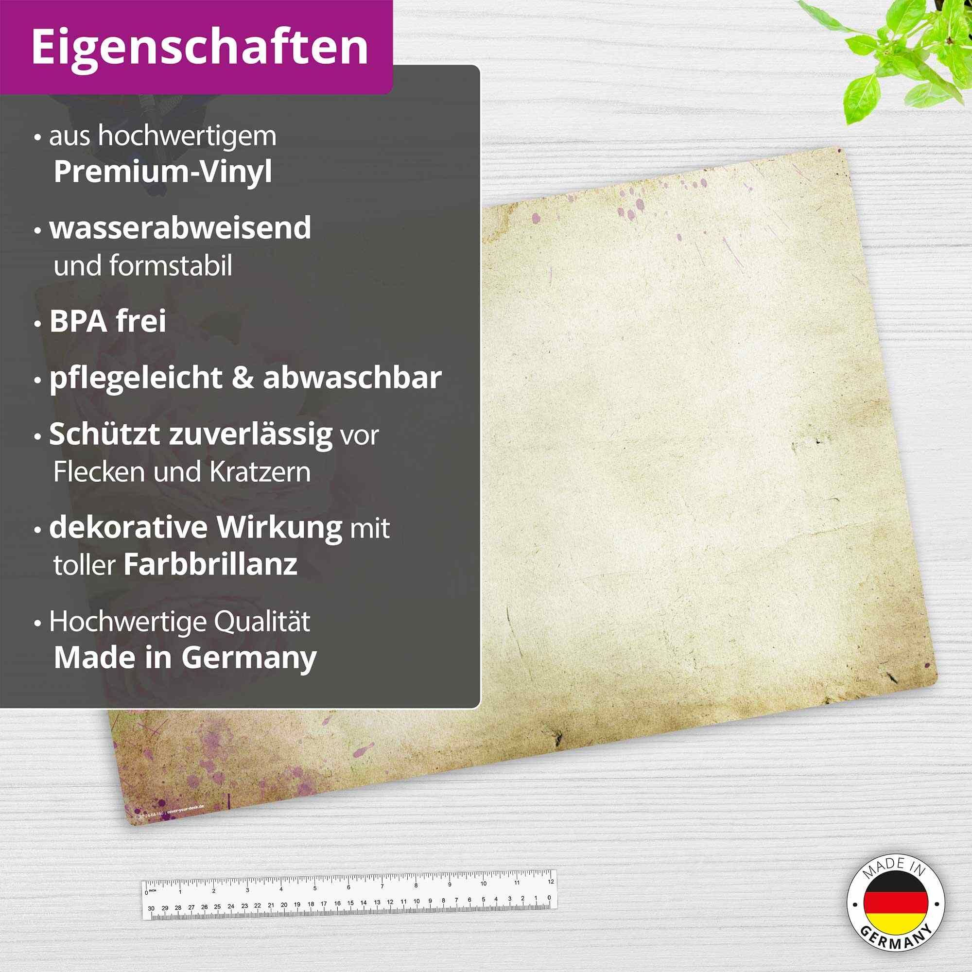Diese Schreibtischunterlage aus 1,6mm dickem, hochwertigem Premium Vinyl bietet einen angenehmen Schreibkomfort und eine tolle Haptik. Sie wird in Deutschland hergestellt.   Das optimale Format von 60 x 40 cm bietet ausreichend Platz für Hefte, Bücher, T...